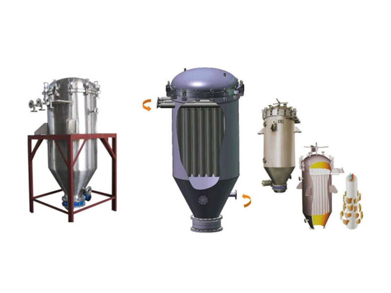 Normal filtering after a period of time , when the filter cake on the multihole filter cartridges reaches a certain thickness , will provide a signal control then the feed (stop), then emptying the residual liquid which inside the filter , after that provides a signal control the blowback port(compressed air , nitrogen or ssaturated steam) to process blowing back , make the cake fall off , after a certain time , stop blowing , provides a signa to open the port for discharge , after the discharge close the discharge port , back to the initial state before filtering , ready for the next round of filtering