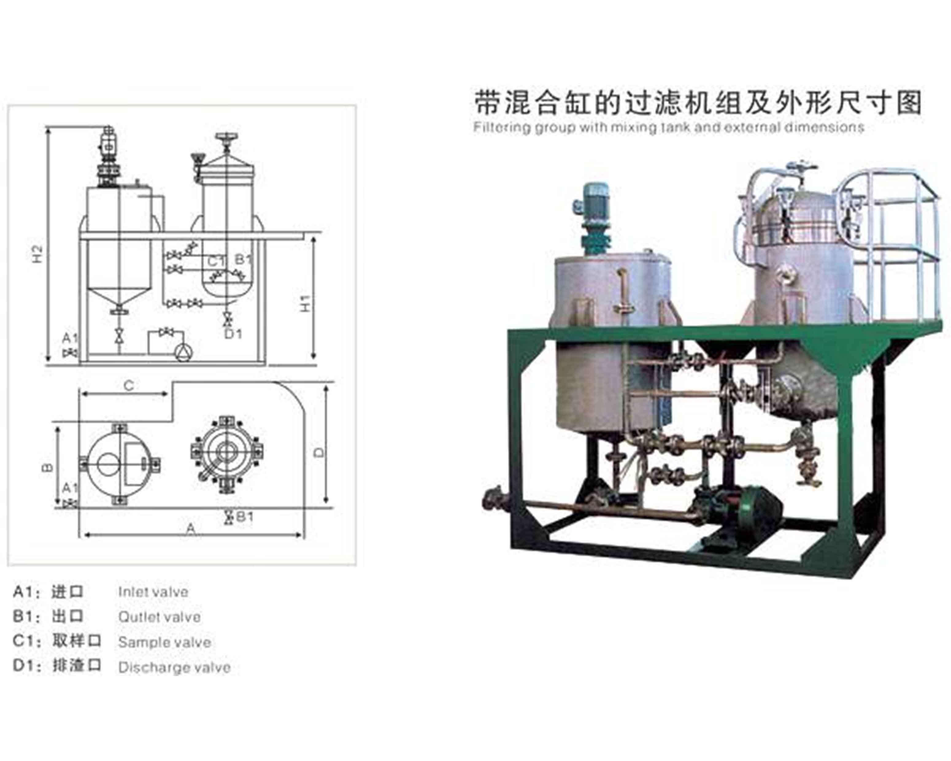 GBF型高效板式密闭过滤机和混合缸、输送泵、管道、阀门、电气控制等一些辅助设备组成一个完整的过滤系统。其过滤工艺需视被过滤介质而定。