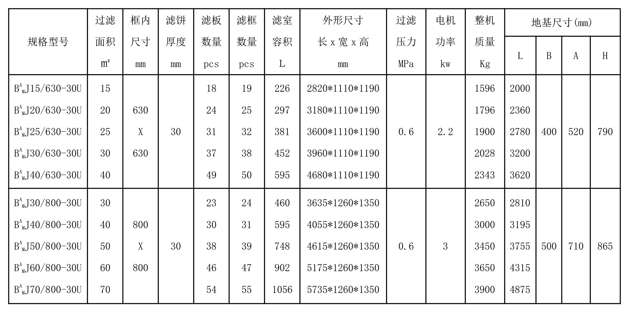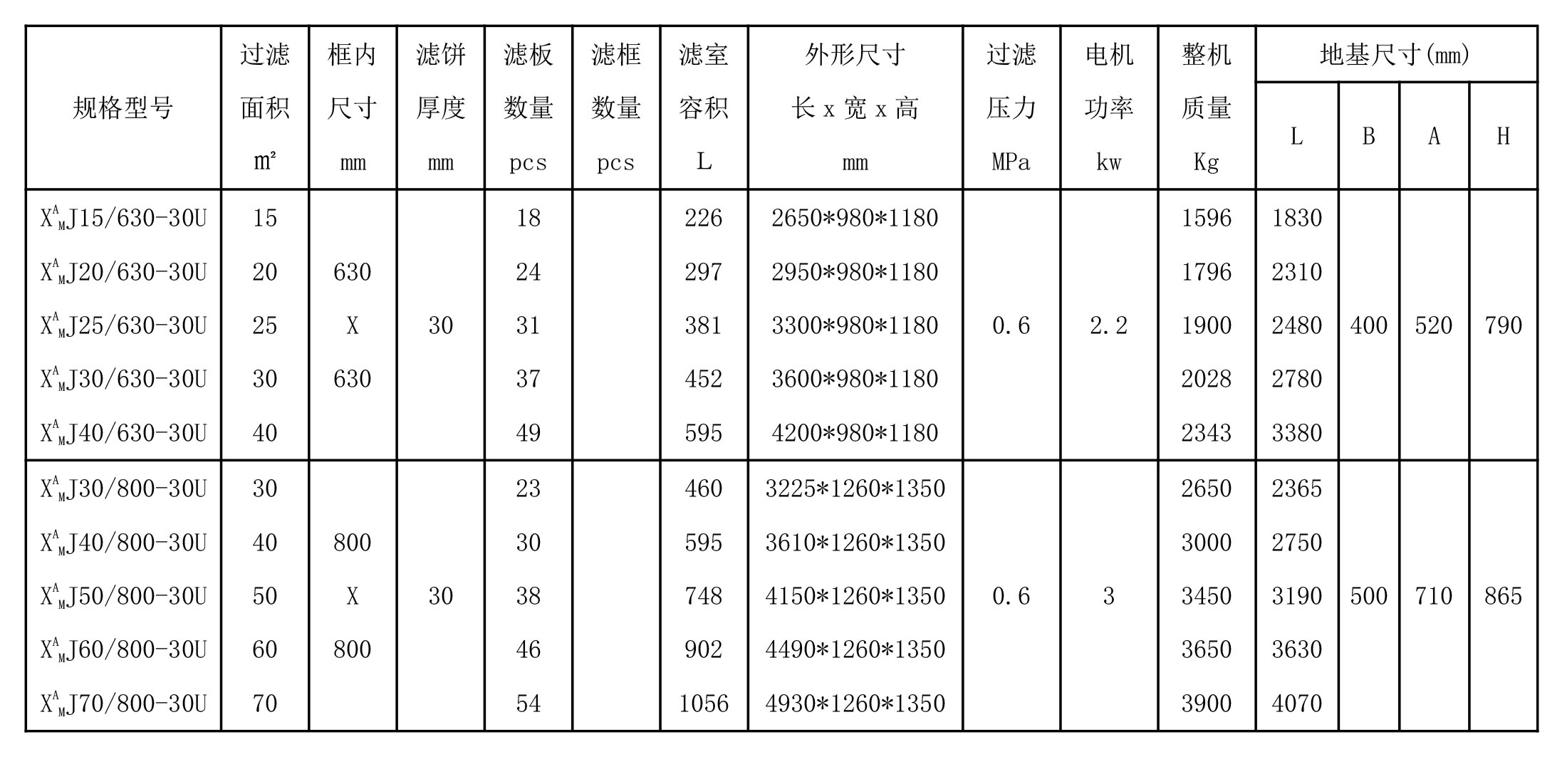 机械压紧增强聚丙烯板框式压滤机技术参数