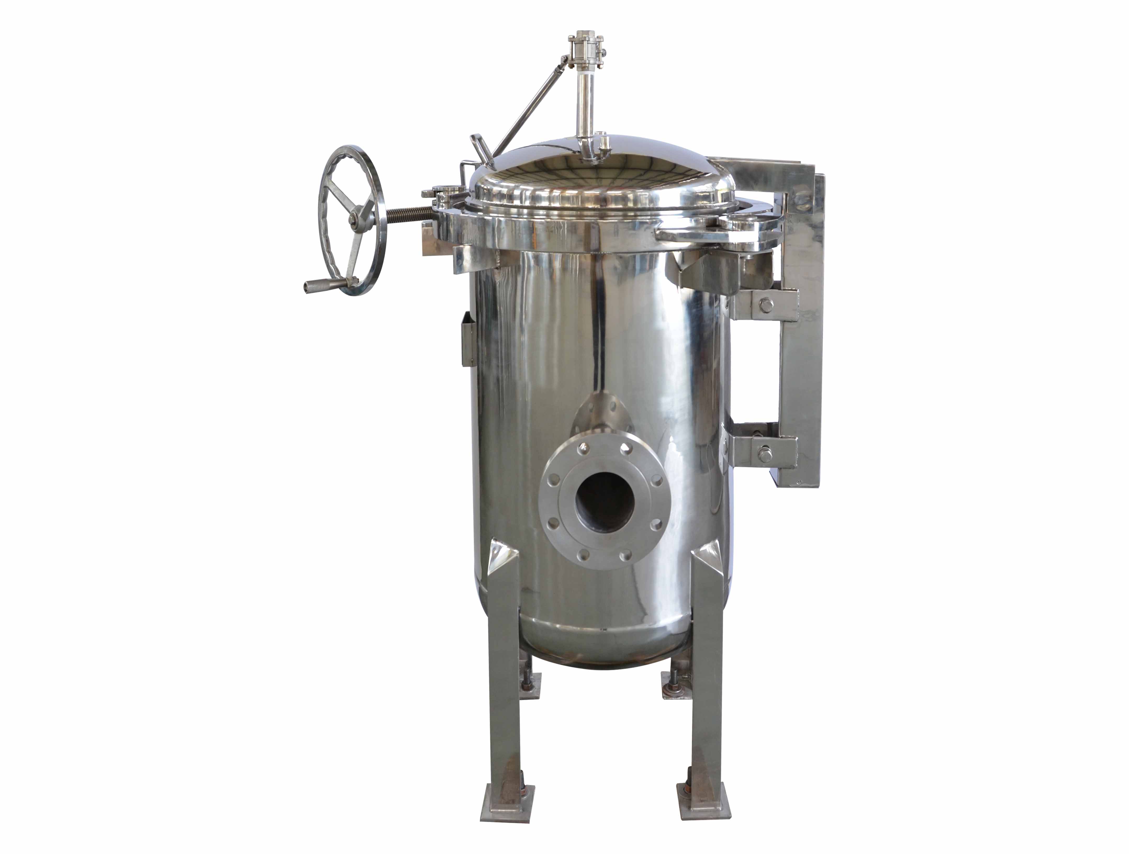 The main components of quick opening bag filter are upturning top cap, spring gravity balance device, the handwheel shake tight device, stainless steel elastic clamp, lift and pull screw rod, filter cylinder body and internal filter bag, filter basket, etc.