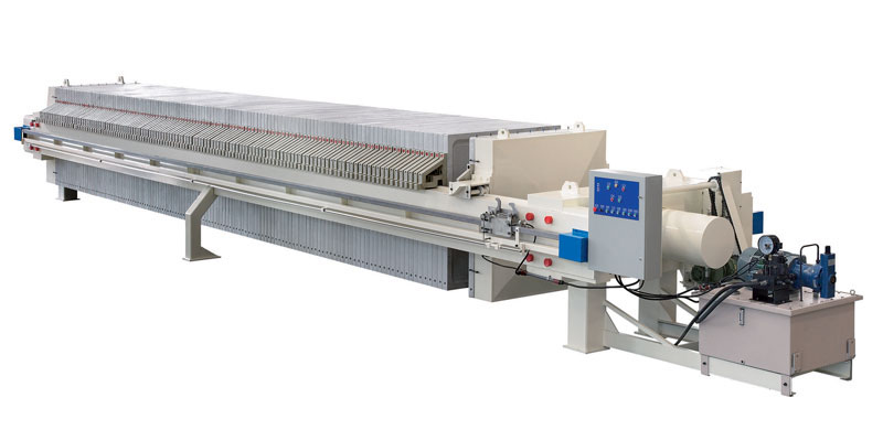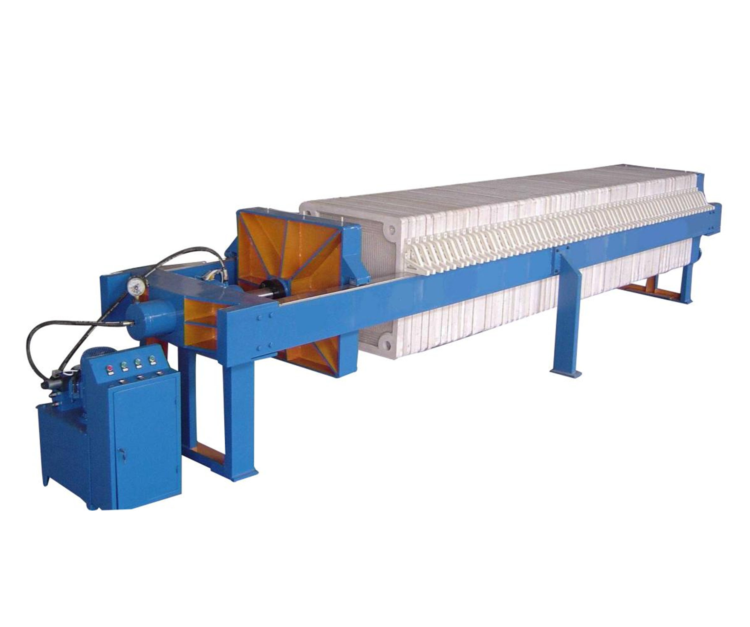 液压压紧自动保压压滤机采用液压装置做为压紧松开滤板的动力结构,并采用电接点压力表实现自动保压。操作简单、安全、省力,整机工作稳定,电器部分配有多种安全装置,确保操作人员安全和压滤机的正常使用。
