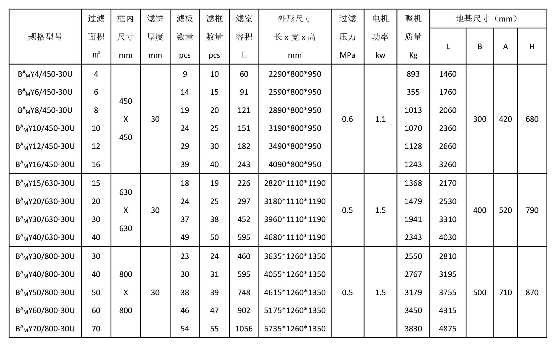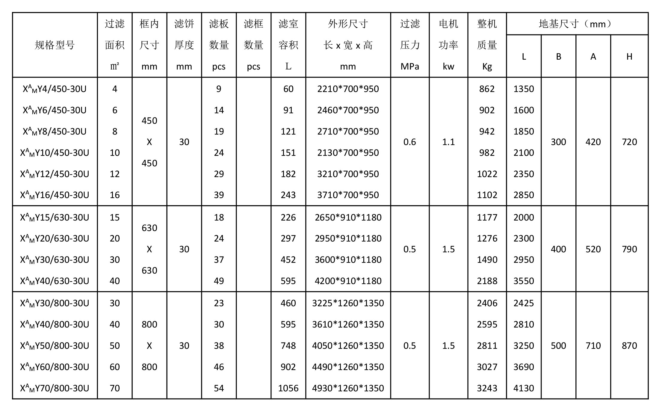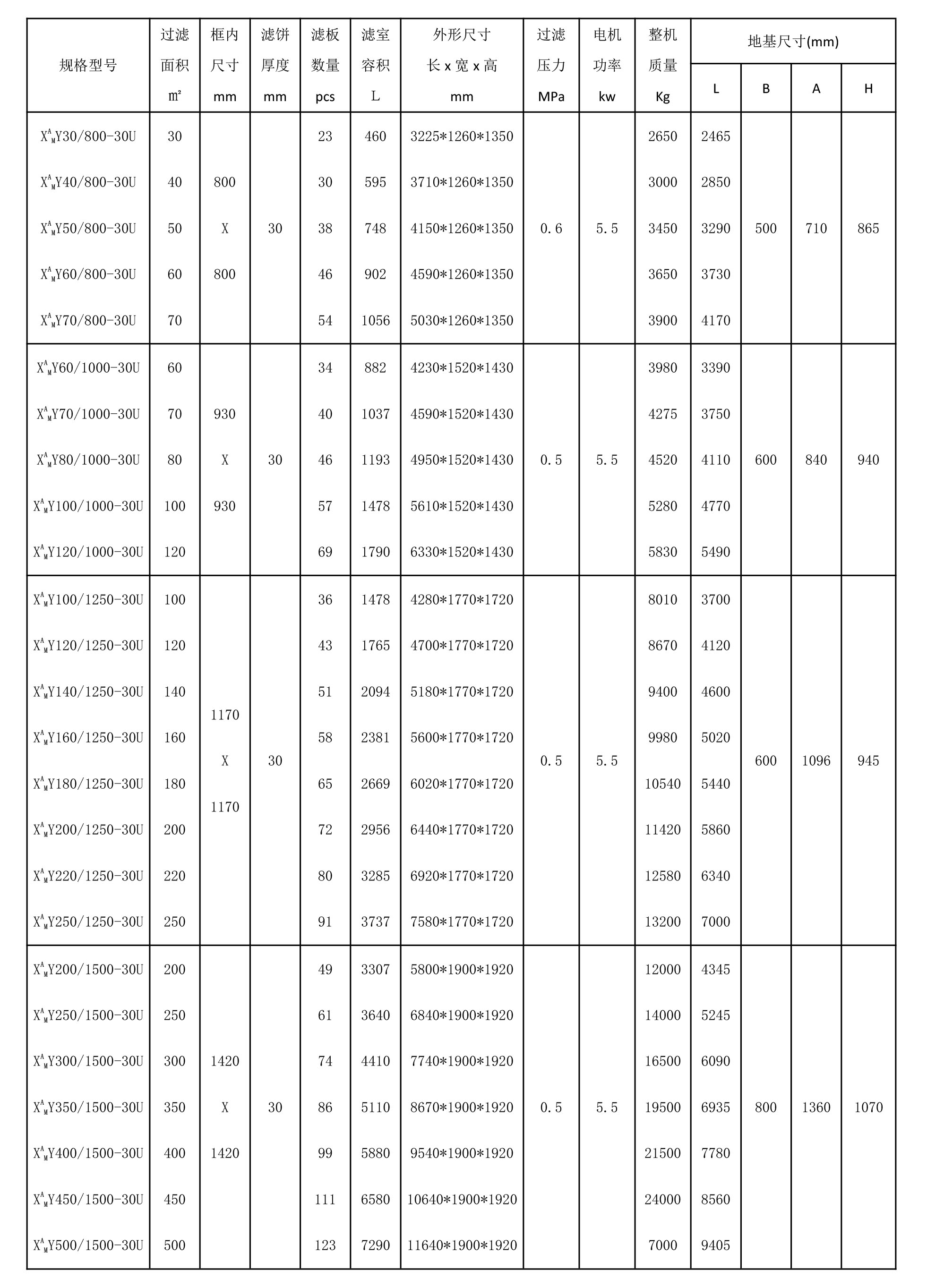 自动保压增强聚丙烯厢式压滤机技术参数: