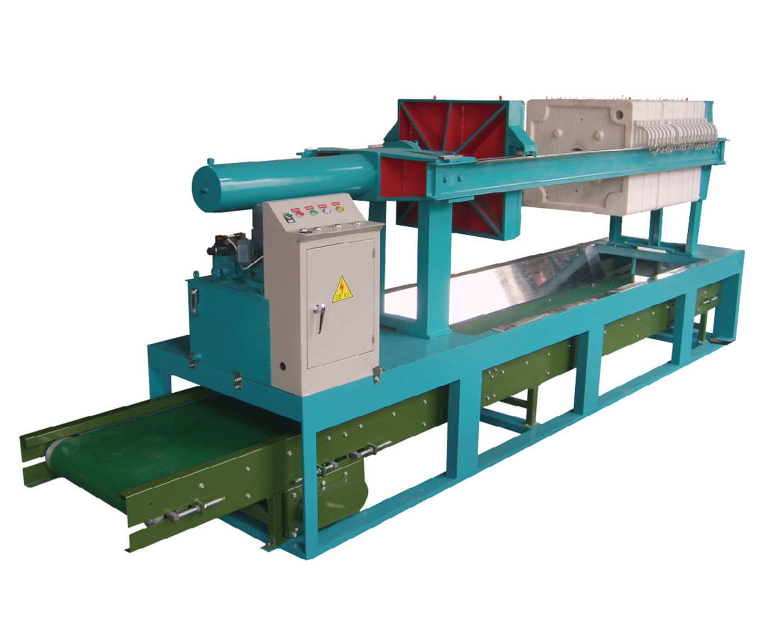 一次性拉开拉板压滤机采用液压装置作为压紧,松开滤板的动力结构,并采用电接点压力表实现自动保压,卸料时压紧板带动由链条连接的每块滤板,一次性完成卸料。操作安全可靠、效率高、磨损少、维护方便、成本低,省工省时等特点。