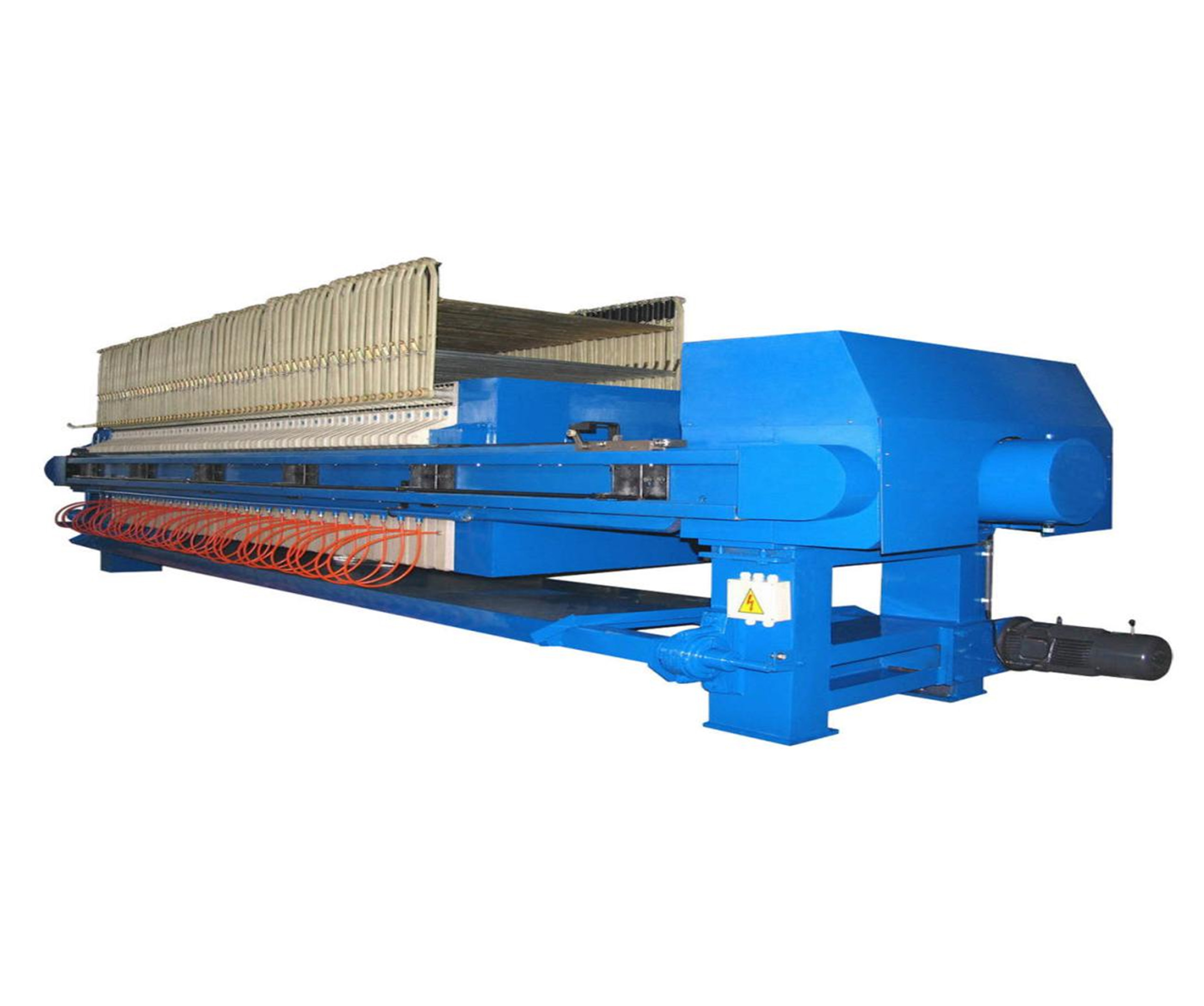 由于某些物料粘度较大,造成滤饼难以自动剥落,我公司开发的滤布曲张系统可使压滤机在工作时能够改变滤布倾斜角度,成倒V字形,同时持在滤布上的弹簧因伸缩而抖动,使滤饼自动脱落。曲张杆采用增强聚丙烯材质,重量轻,耐腐蚀,具有动作轻灵活可靠,维护方便等特点。